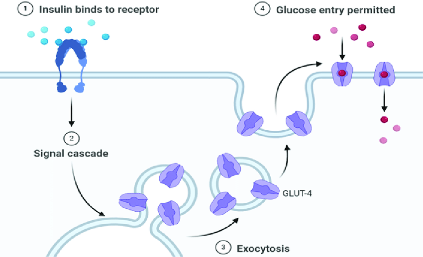 El daño muscular afecta la síntesis de glucógeno muscular (reservas de glucosa). GLUT-4 es una proteína transportadora de glucosa regulada por la insulina, que se localiza en el músculo esquelético, el miocardio y el tejido graso.