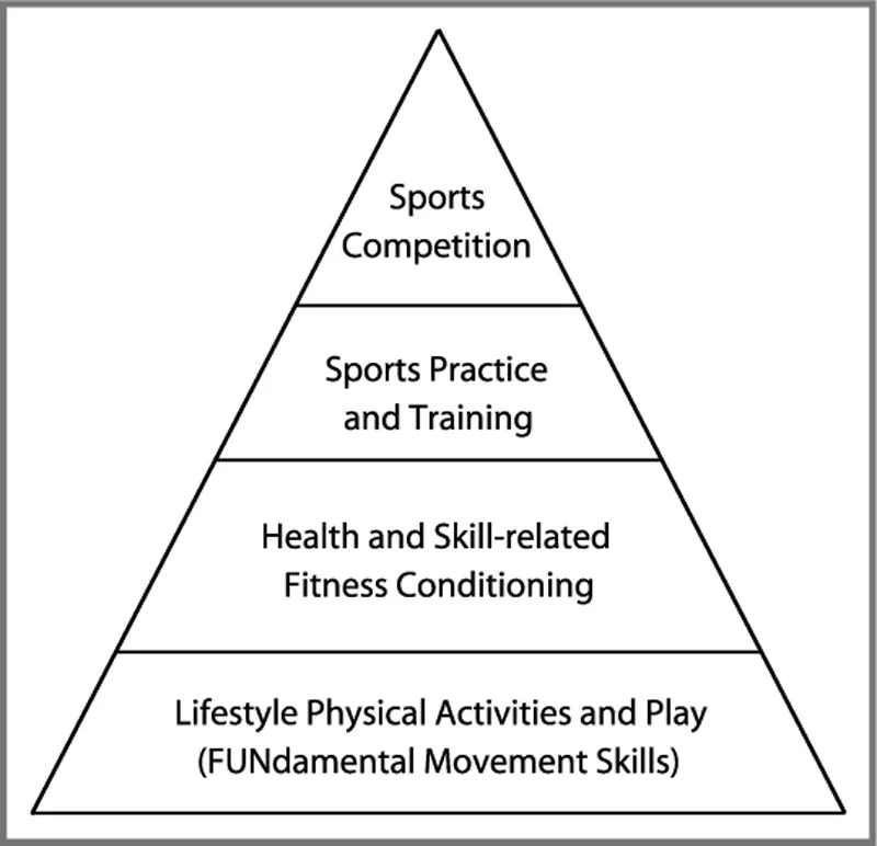 La participación en la actividad física no debe girar en torno a un deporte, sino más bien evolucionar a partir de actividades físicas variadas que incluyen habilidades de movimiento generales y fundamentales( p. ej. correr, saltar, girar, brincar) que mejoren tanto la salud como las relacionadas con las habilidades específicas de una disciplina en concreto.