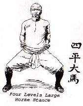 Viene de China, se encuentra en prácticamente todas las artes marciales chinas, en Tae Kwon Do y Kung Fu. Es una posición de cuclillas con una postura amplia, sostenida isométricamente. La postura del caballo generalmente no se hace como una sentadilla de arriba hacia abajo, sino que es una posición isométrica.