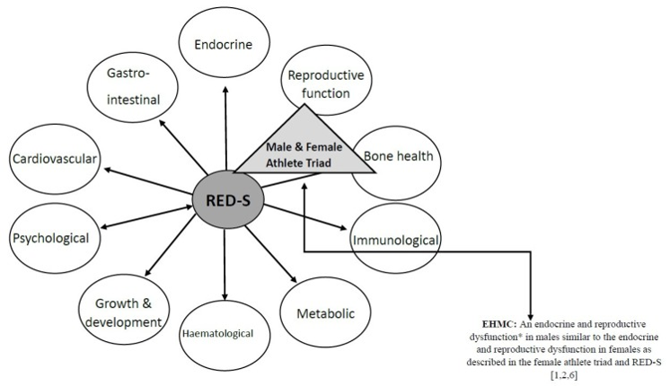En el caso de las mujeres se habla de la Tríada, en la cual una mujer puede pasar desde un estado de salud óptimo [disponibilidad energética óptima, función menstrual normal y buena salud ósea] a un estado de enfermedad [disponibilidad energética baja (con y sin un trastorno alimentario), disfunción menstrual y densidad mineral ósea baja].